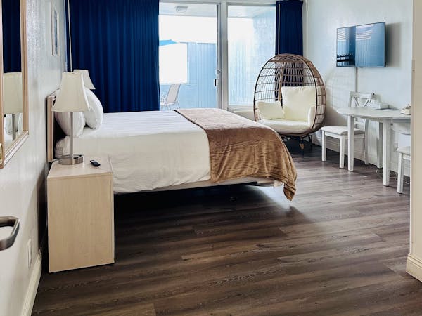 Beachfront Patio room with 1 King Bed. Gorgeous view of the Marina, and Mother's Beach. Walking distance to Venice Beach, Restaurants and more.