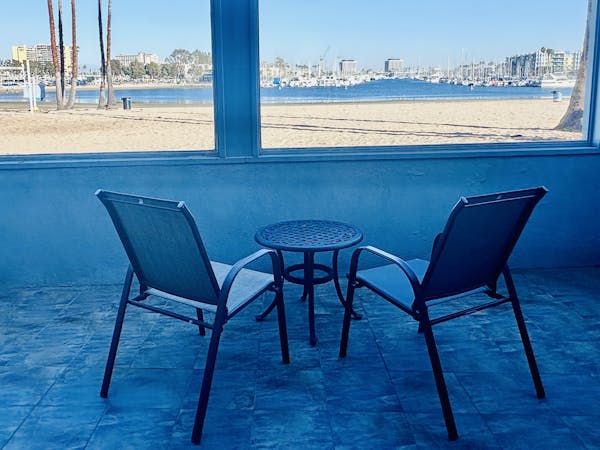 Beachfront Patio room with 2 Double Beds. Gorgeous view of the Marina, and Mother's Beach. Walking distance to Venice Beach, Restaurants and more.